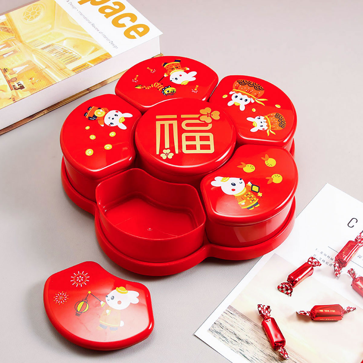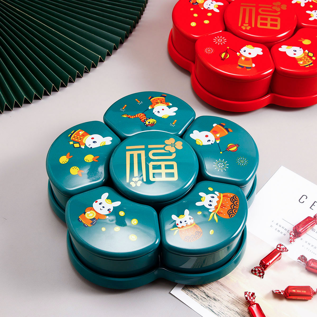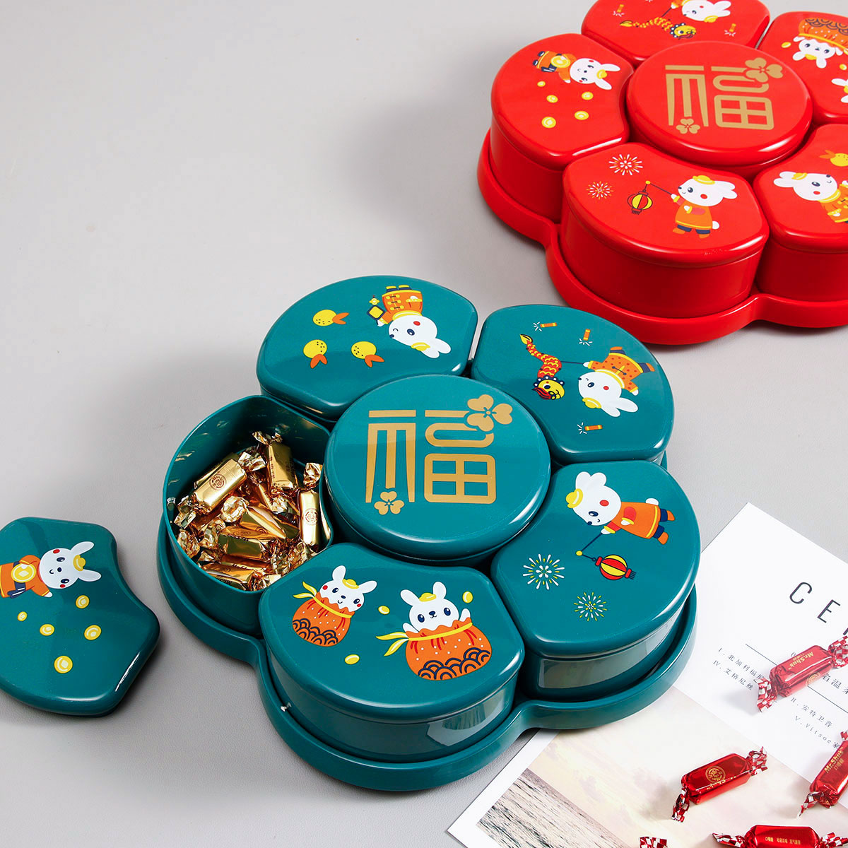 梅花旋轉(zhuǎn)糖果盒 (紅/綠)