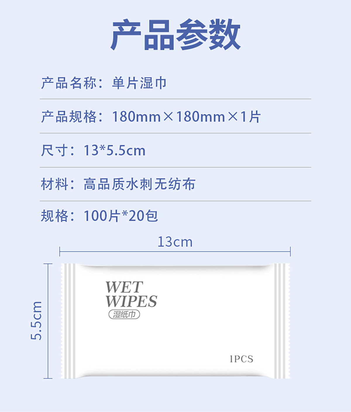Size: 包裝袋:130*55mm 濕巾:180mm*180mm*1片