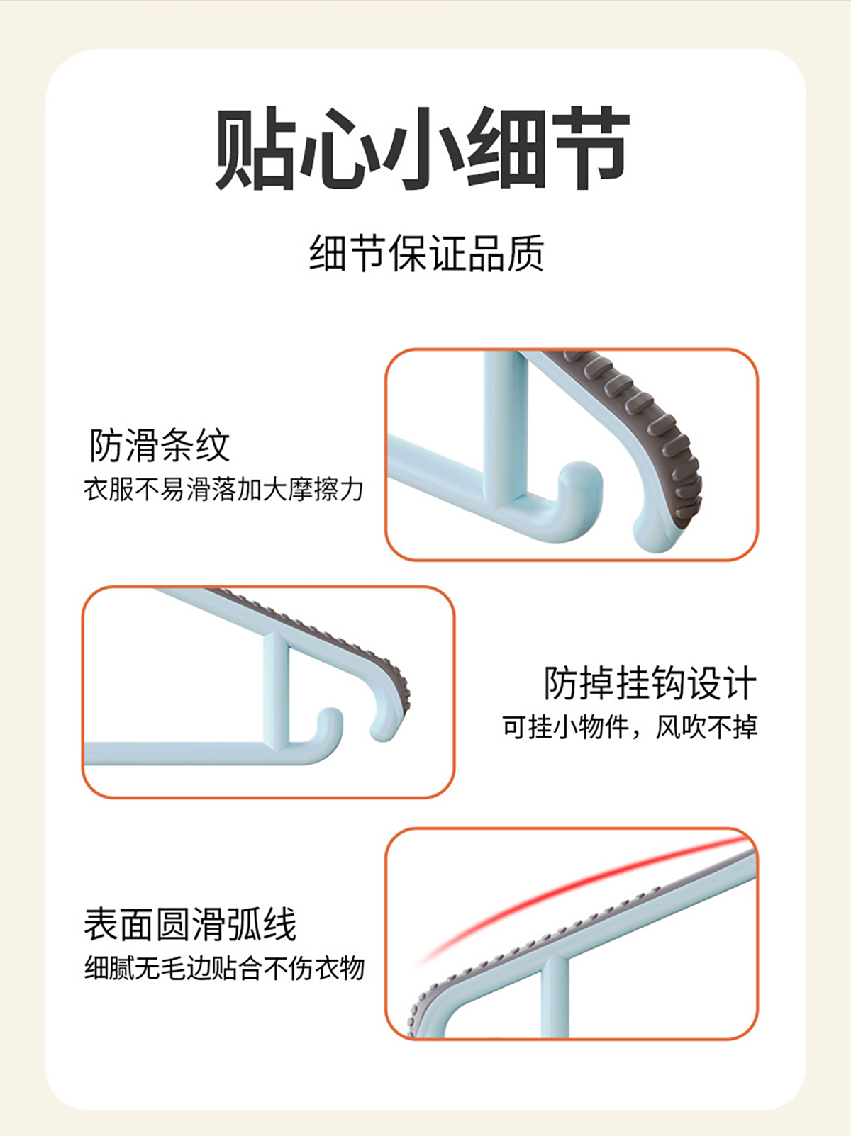 40cm/44cm防滑衣架帶掛鉤(5個(gè)裝)