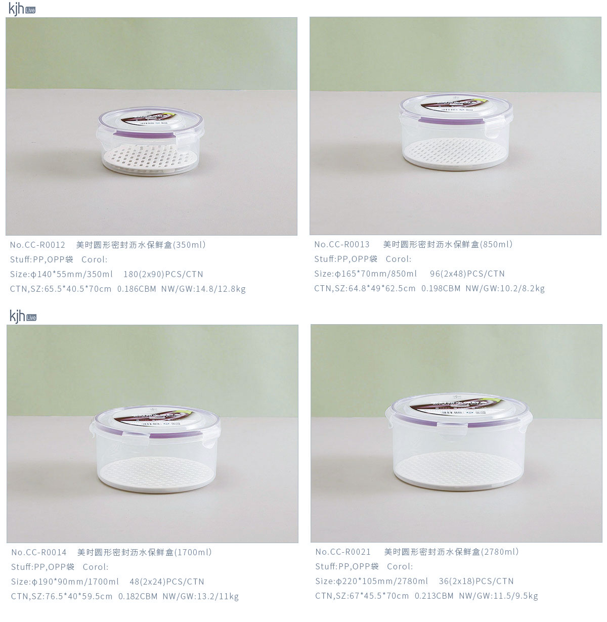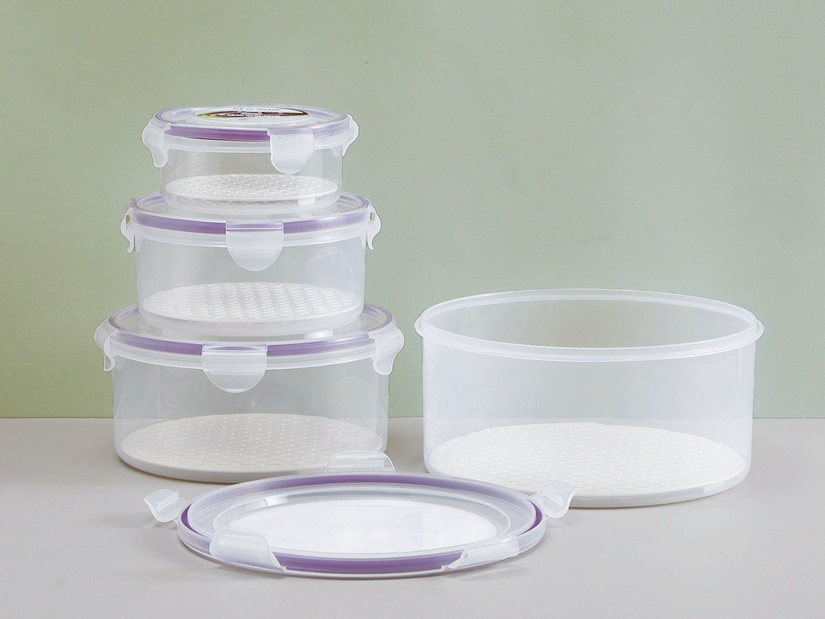 美時圓形密封瀝水保鮮盒(350ml/850ml/1700ml/2780ml/4220ml)