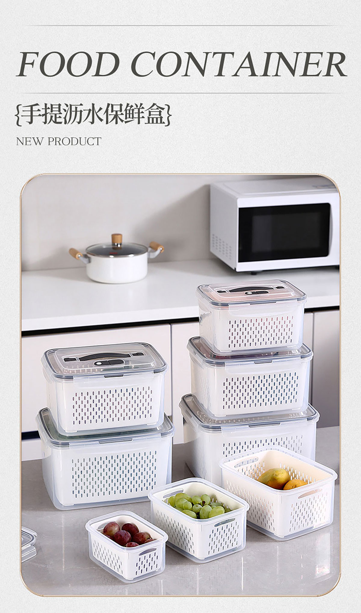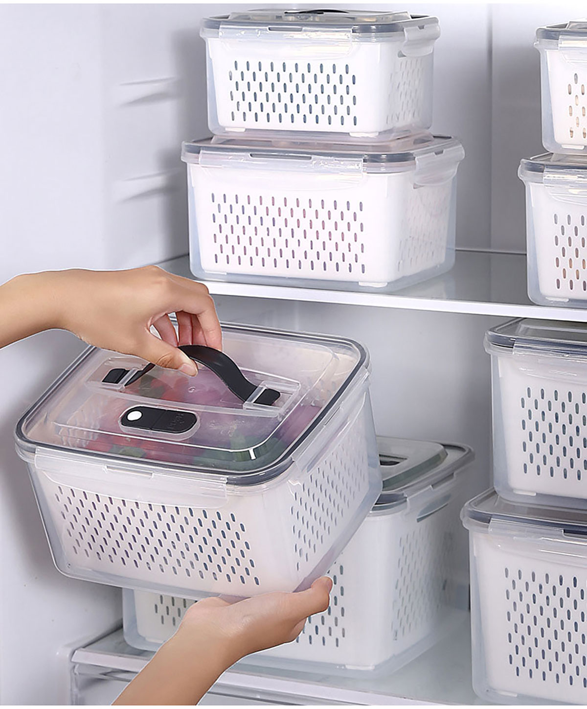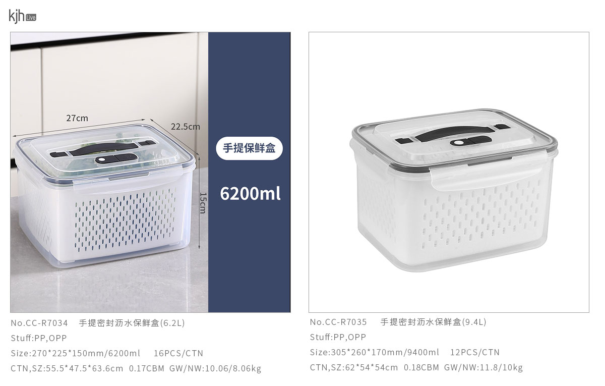 手提密封瀝水保鮮盒(800ml/1.7L/3.15L/4.15L/6.2L/9.4L)