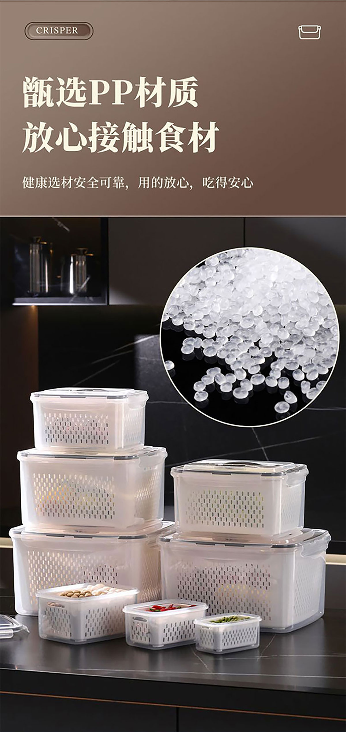 三件/四件/五件/六件/七件手提套長方形密封瀝水保鮮盒