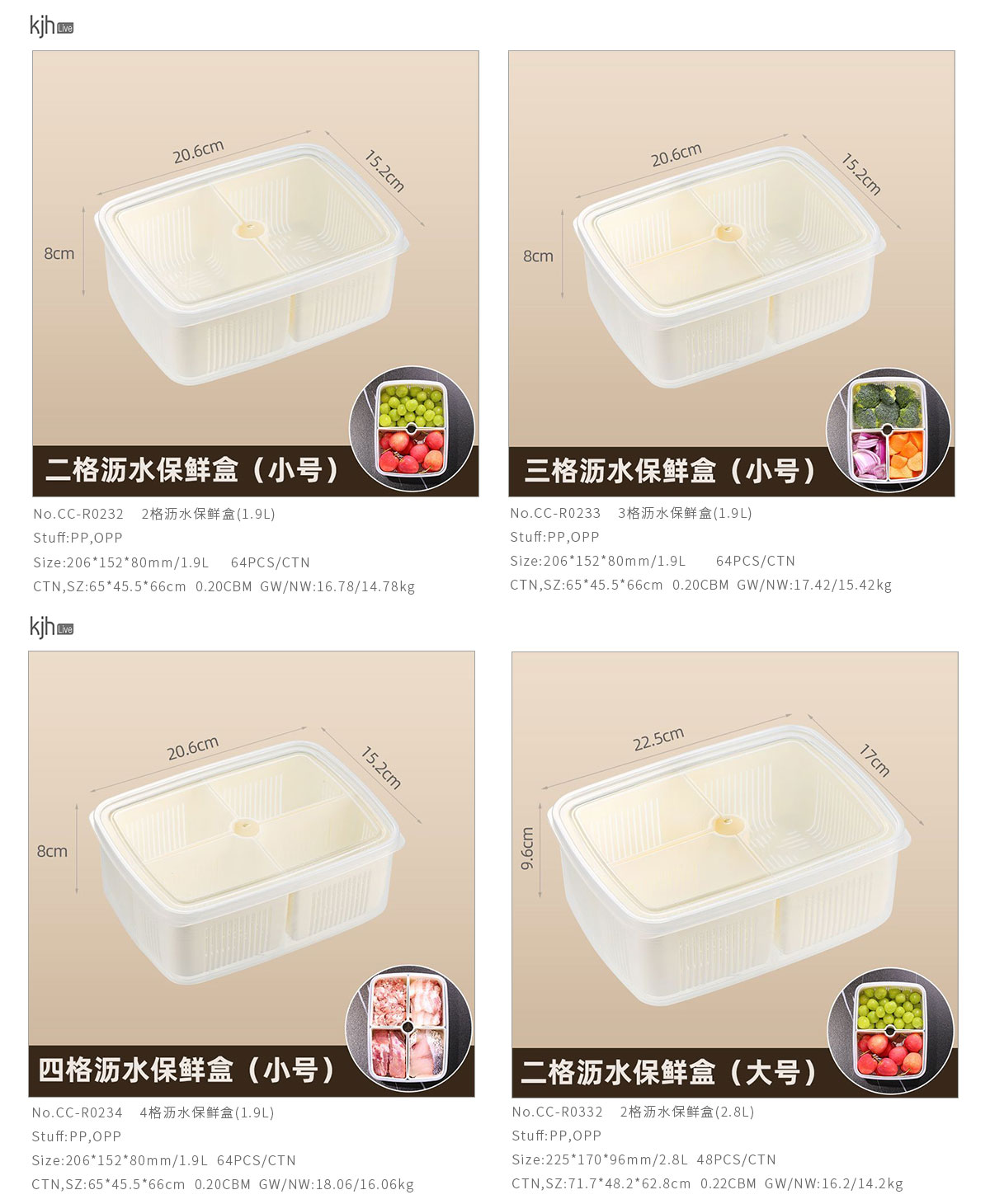Size: CC-R0232(2格):206*152*80mm/1.9L