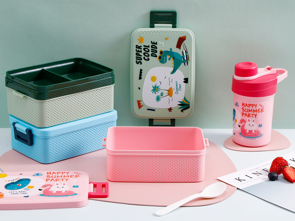 童彩單層/雙層飯盒+運動水壺套裝(飯盒800ml/1000ml+水杯350ml