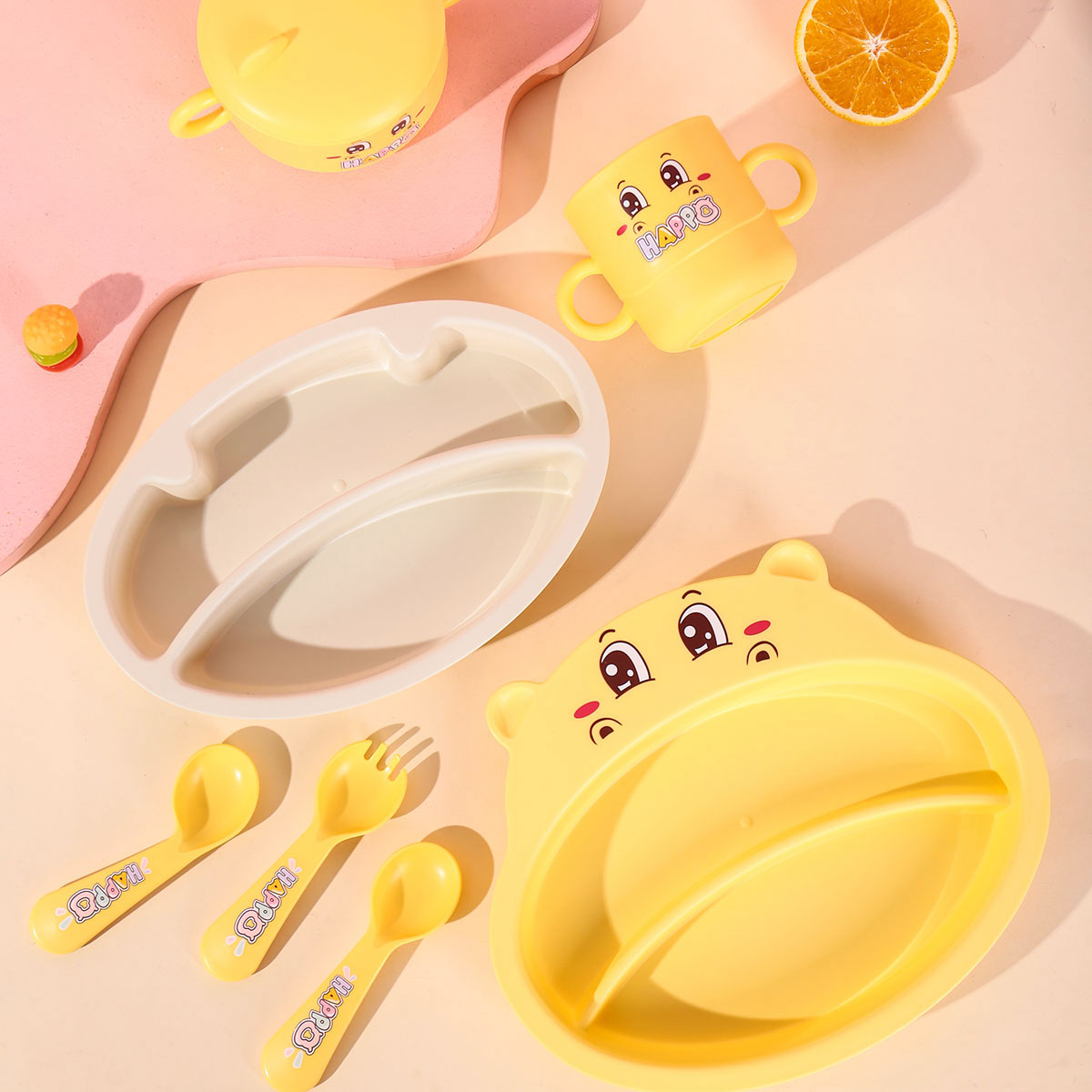 HH-XJ8332:餐盤215*253*40mm/碗160*110*80mm/杯140*80*83mm/勺叉125mm