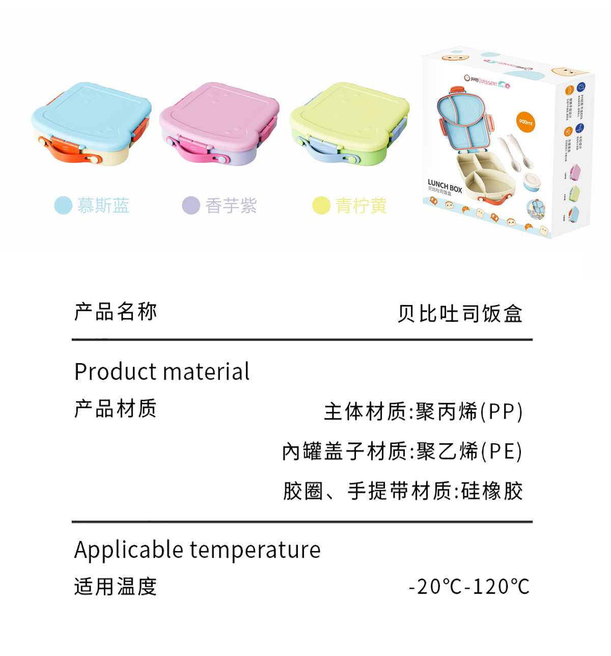 貝比吐司飯盒(900ml) 彩盒裝