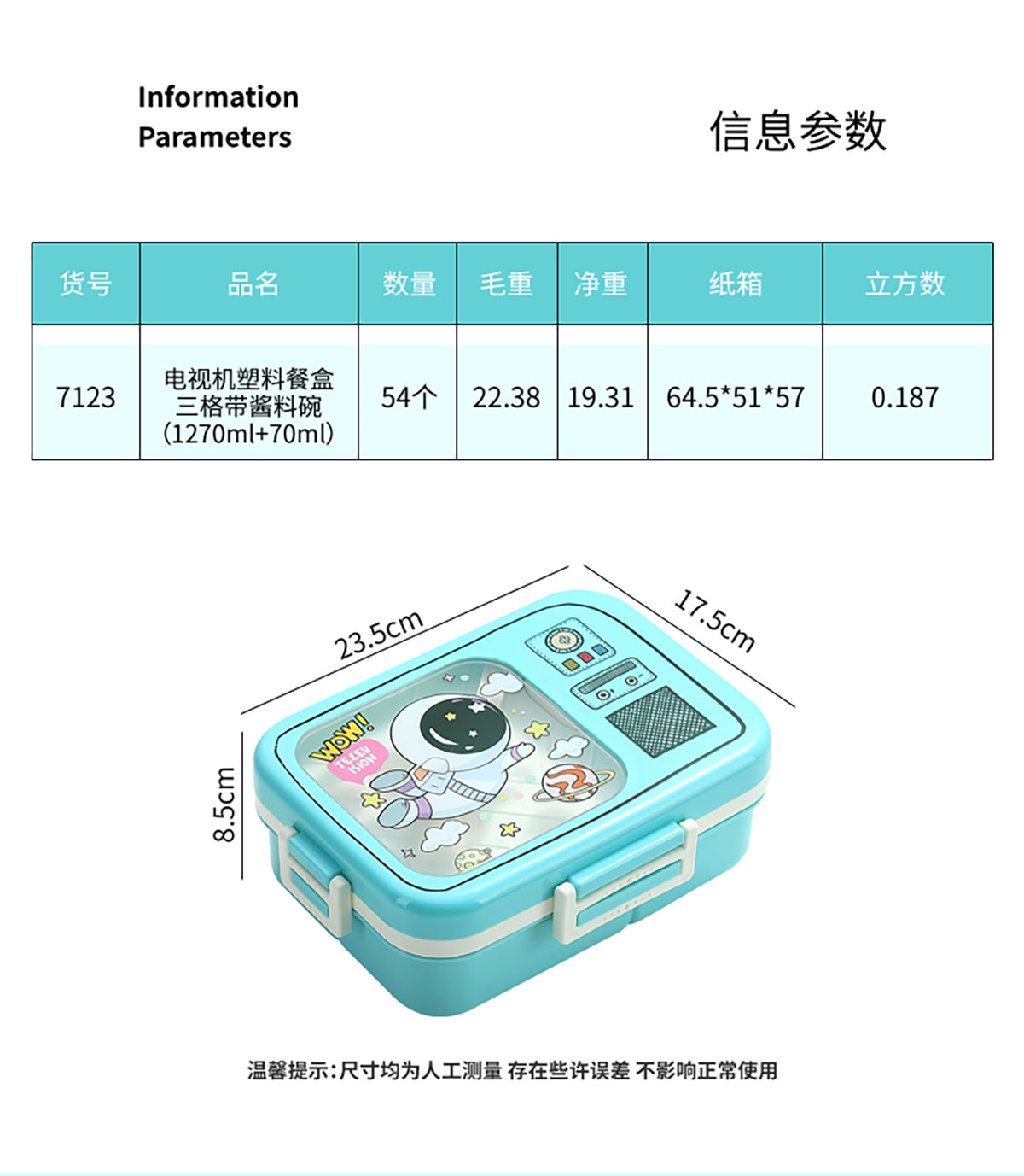 電視機(jī)塑料飯盒/三格1270ml+70ml