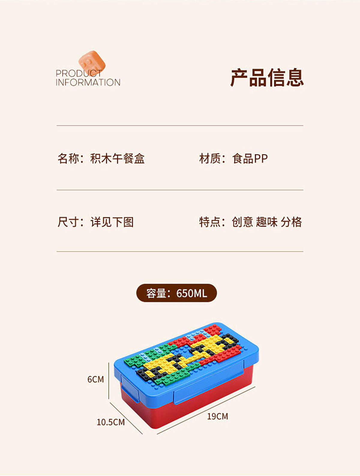 創(chuàng)意積木飯盒B款(不含積木粒)
