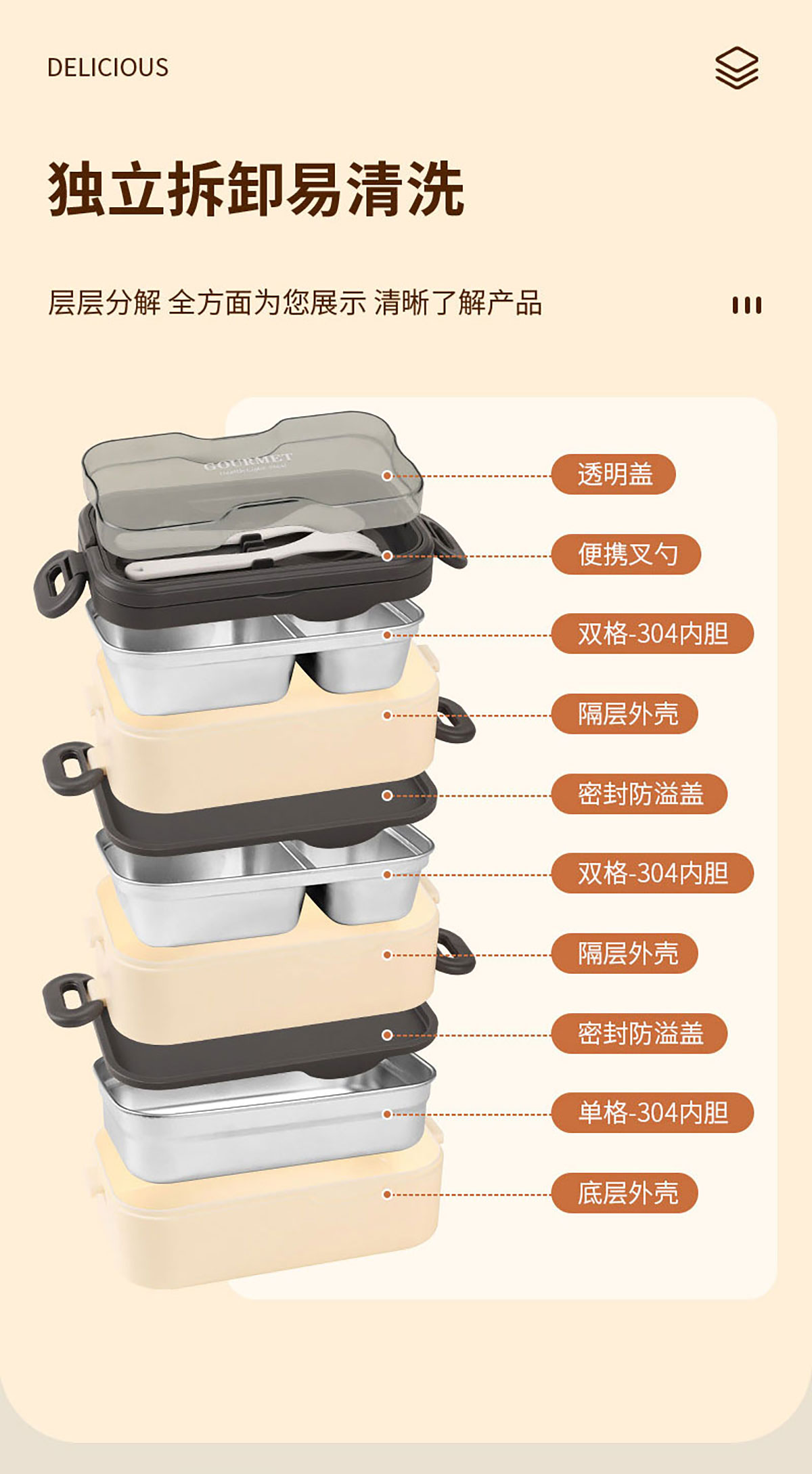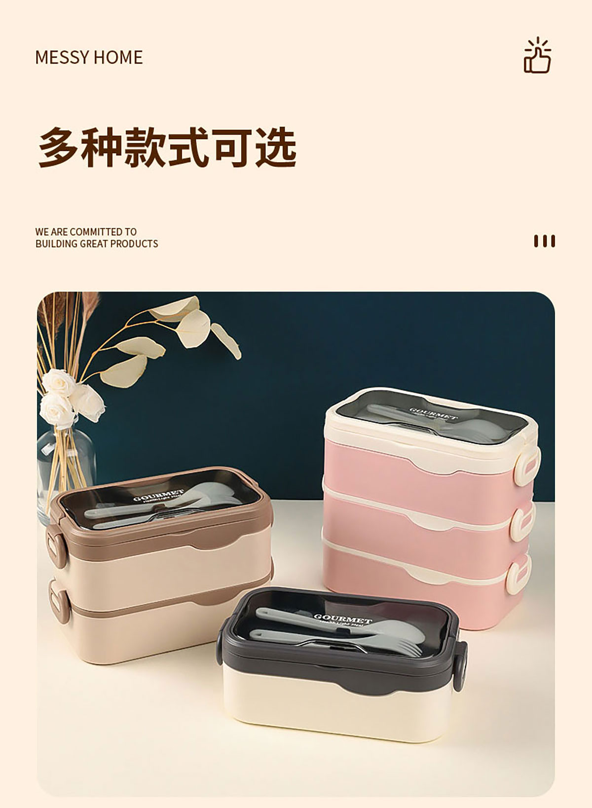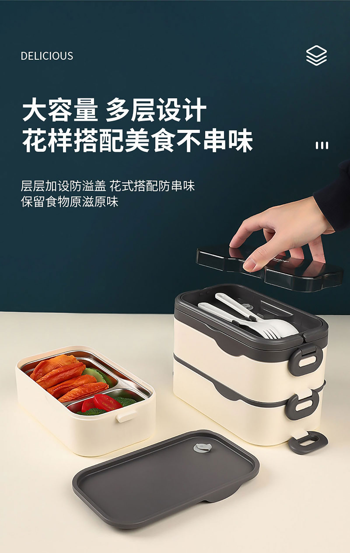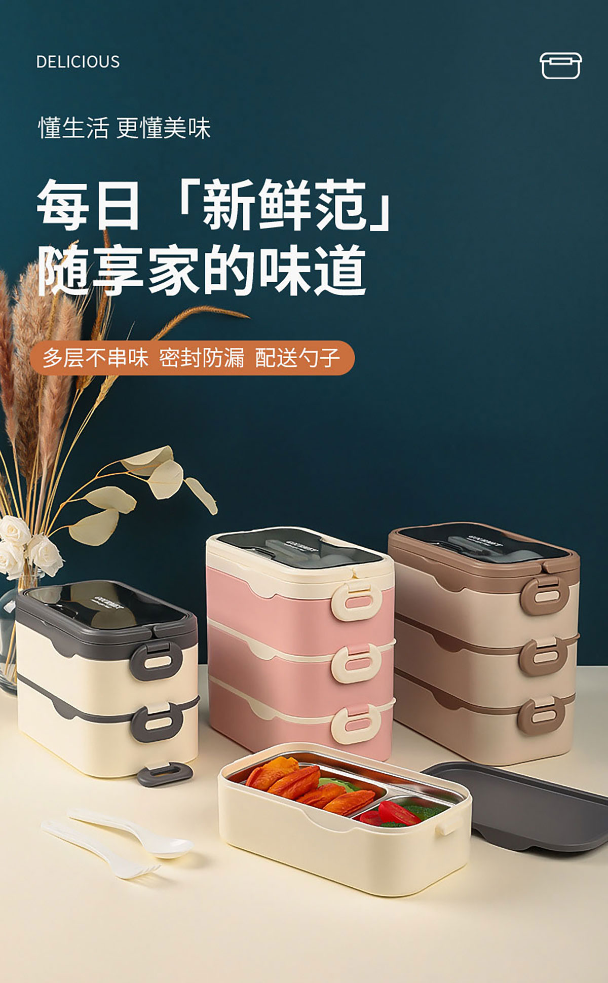 品韻單層/雙層/三層飯盒配叉勺 (塑料/不銹鋼)