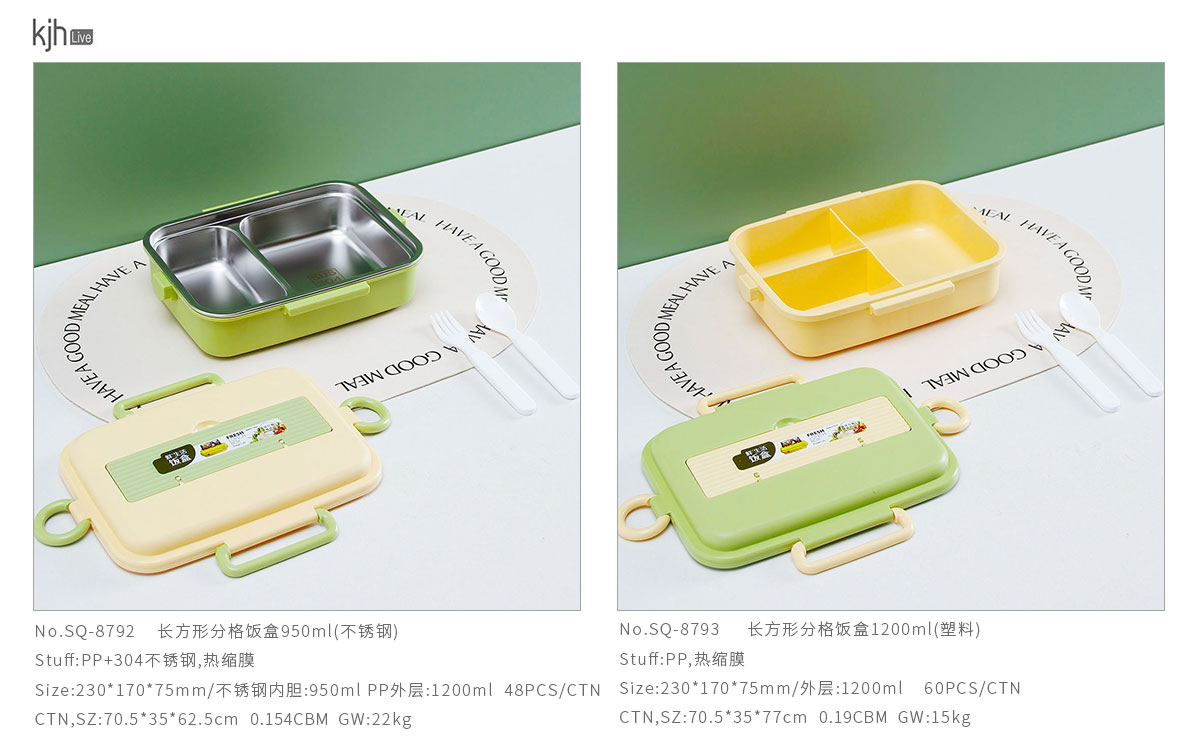 Size: SQ-8792(不銹鋼):230*170*75mm/不銹鋼內(nèi)膽:950ml PP外層:1200ml SQ-8793(塑料):230*170*75mm/外層:1200ml