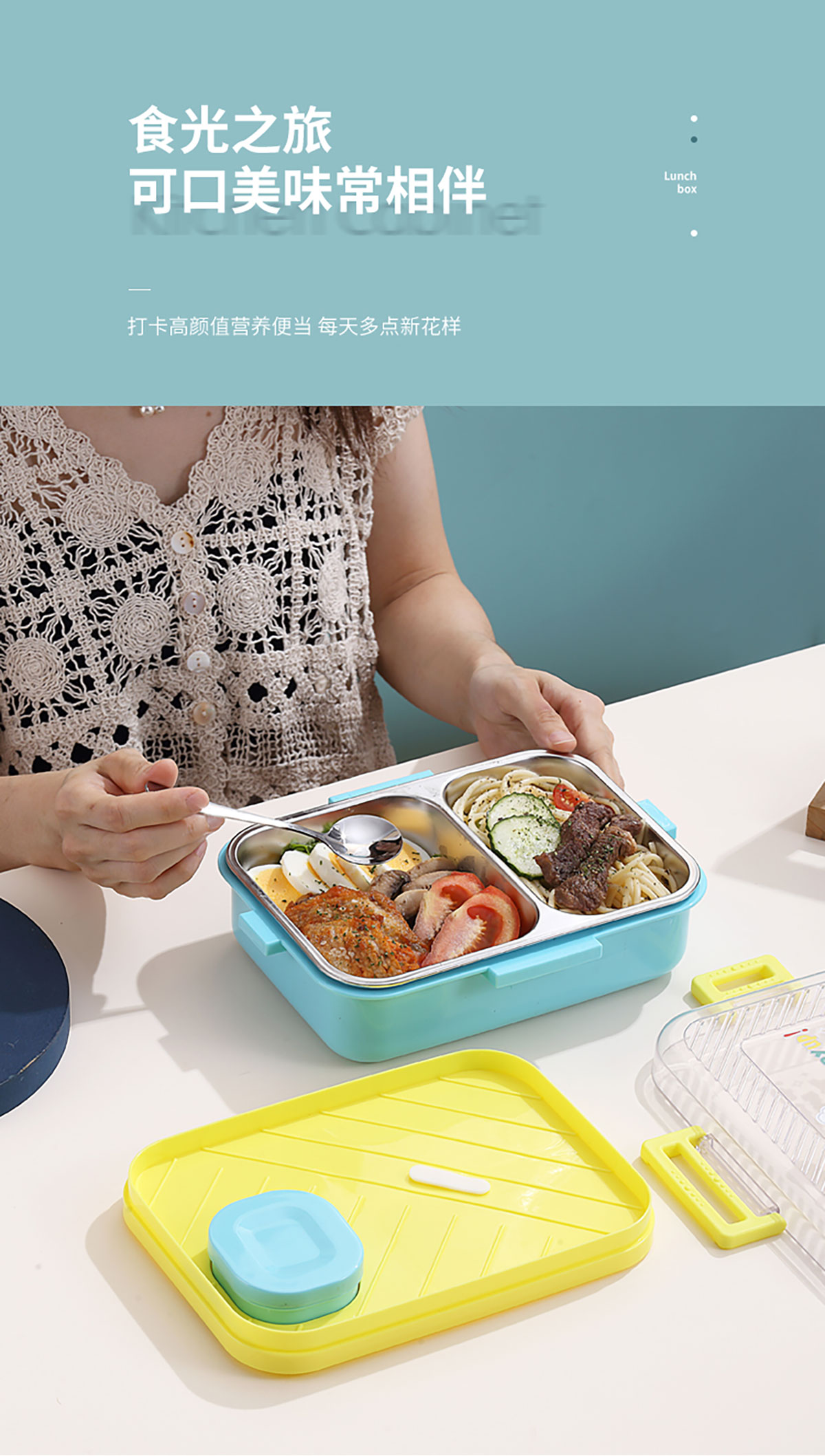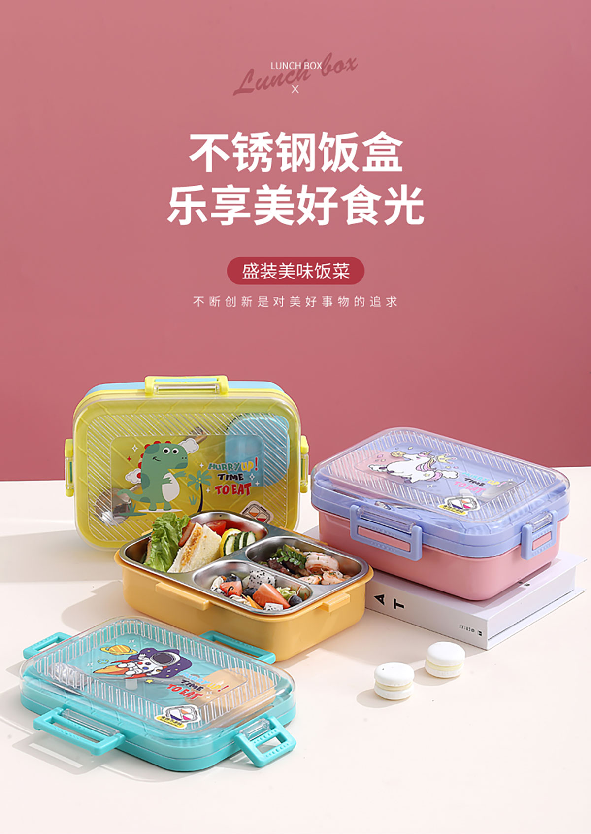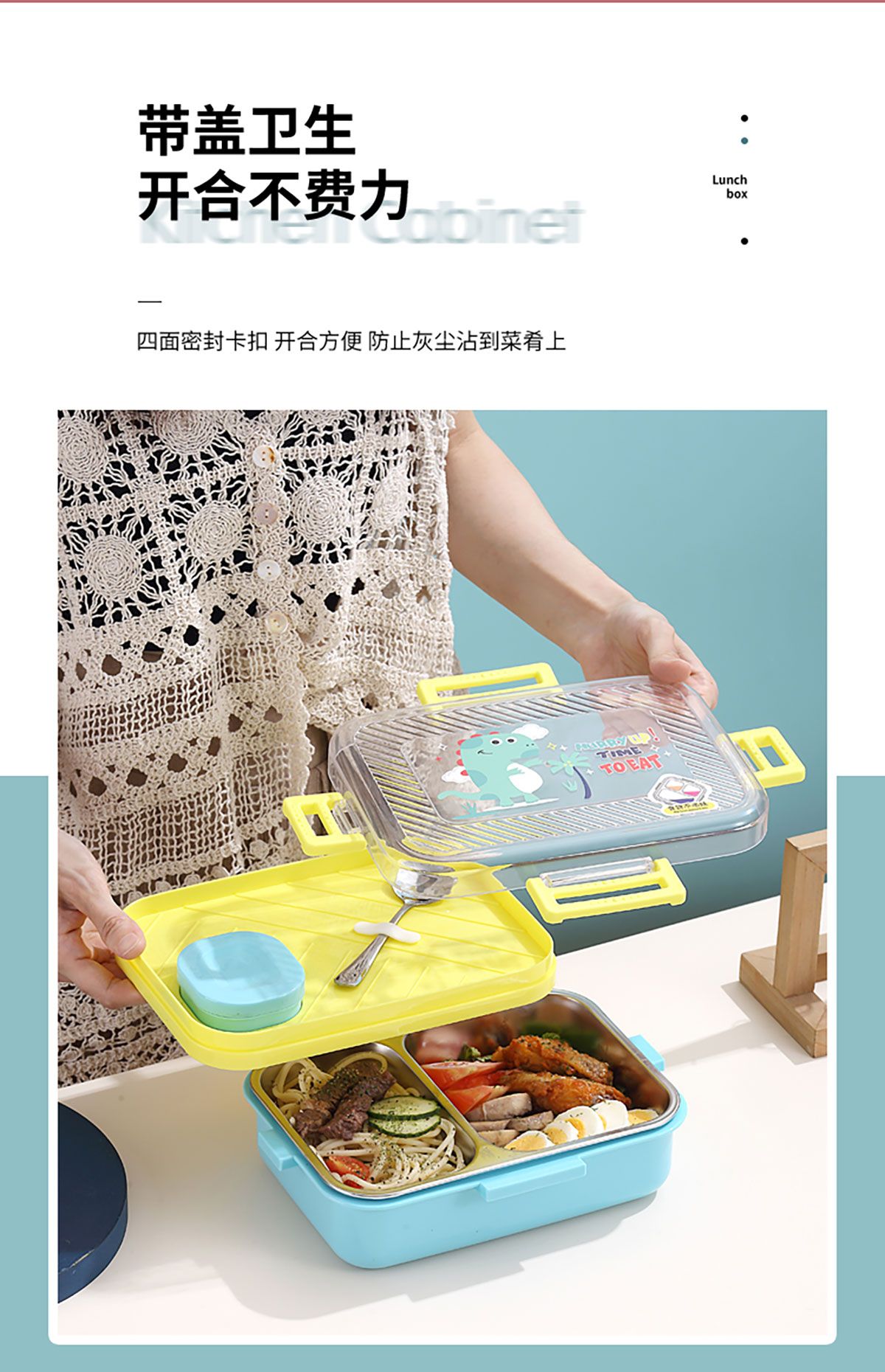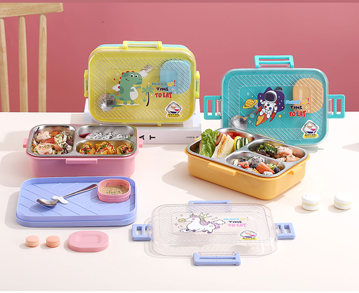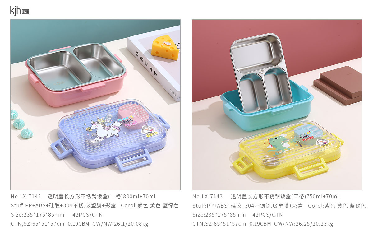 透明蓋長(zhǎng)方形不銹鋼飯盒(二格/三格)800ml+70ml