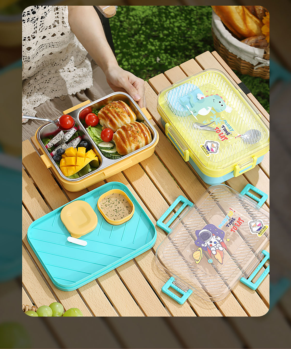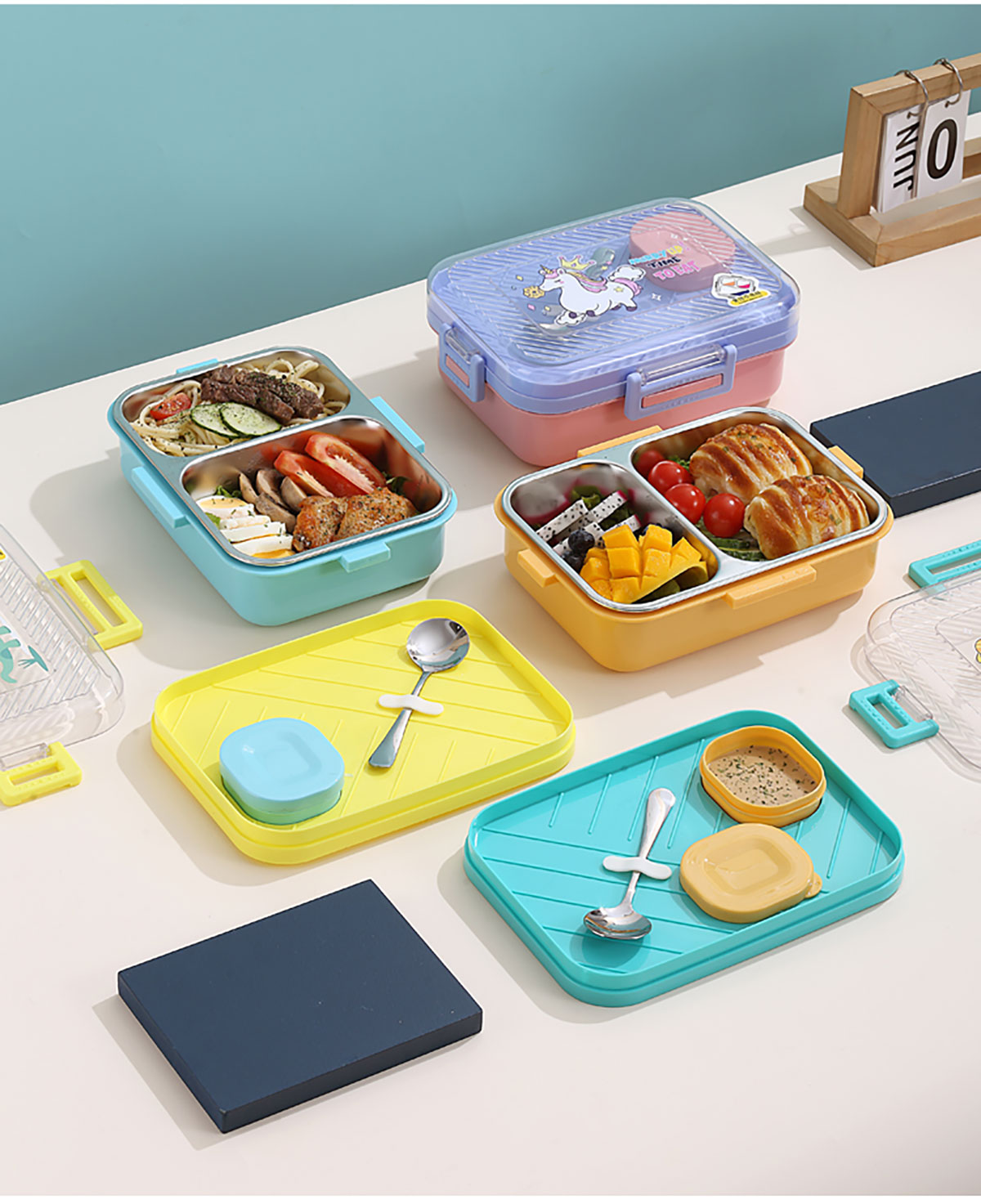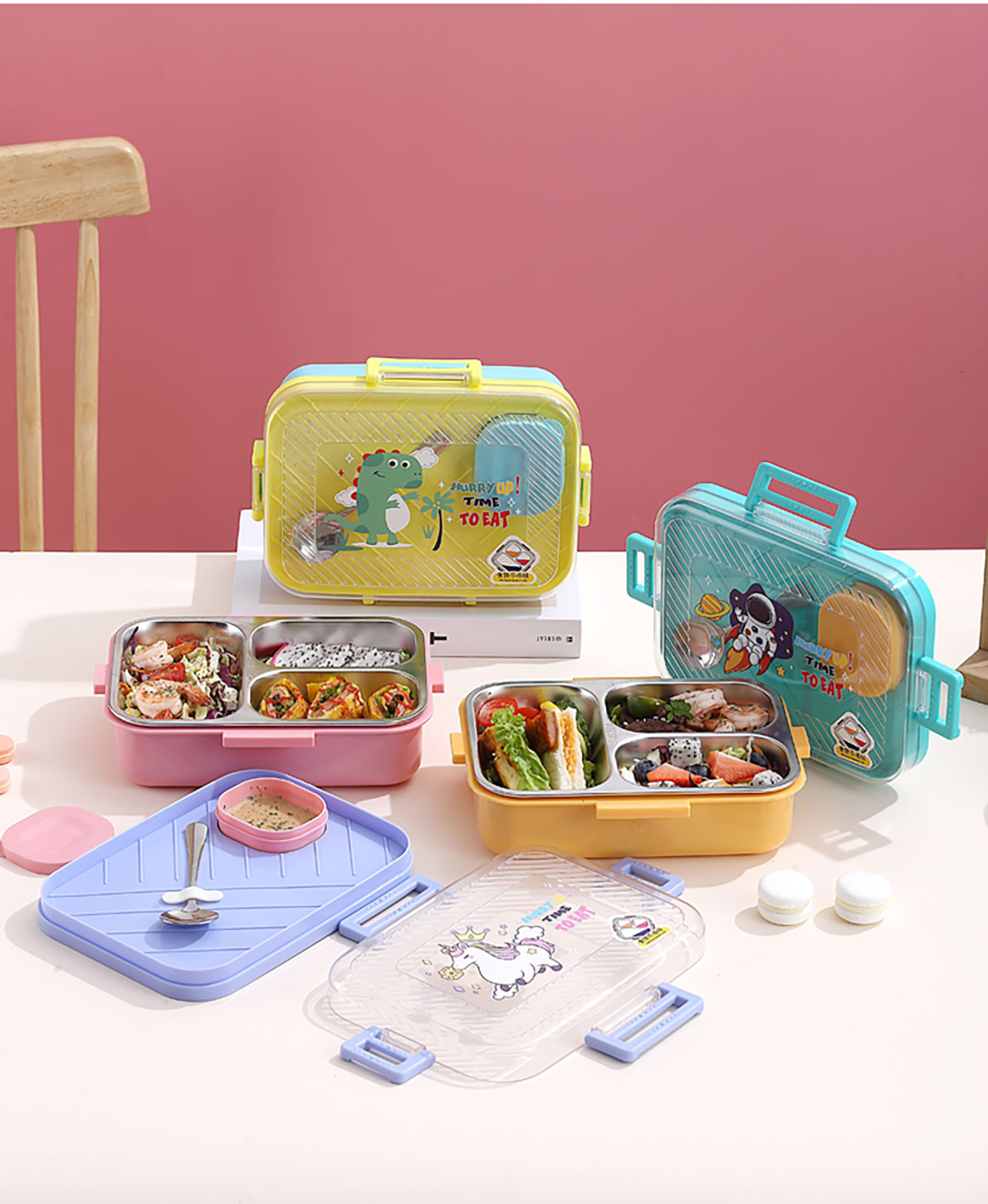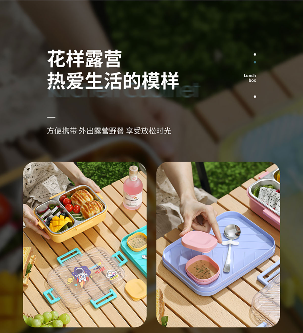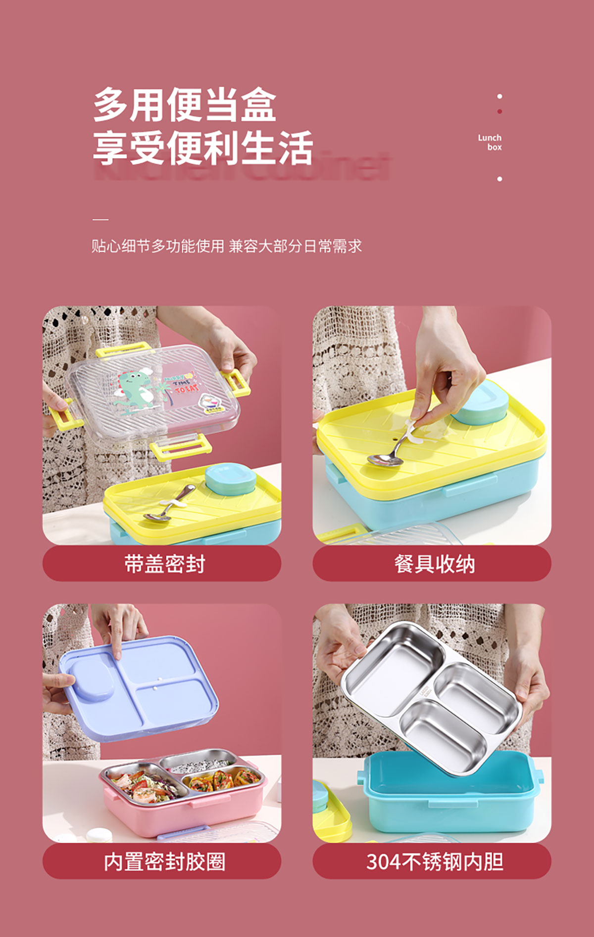 透明蓋長(zhǎng)方形不銹鋼飯盒(二格/三格)800ml+70ml