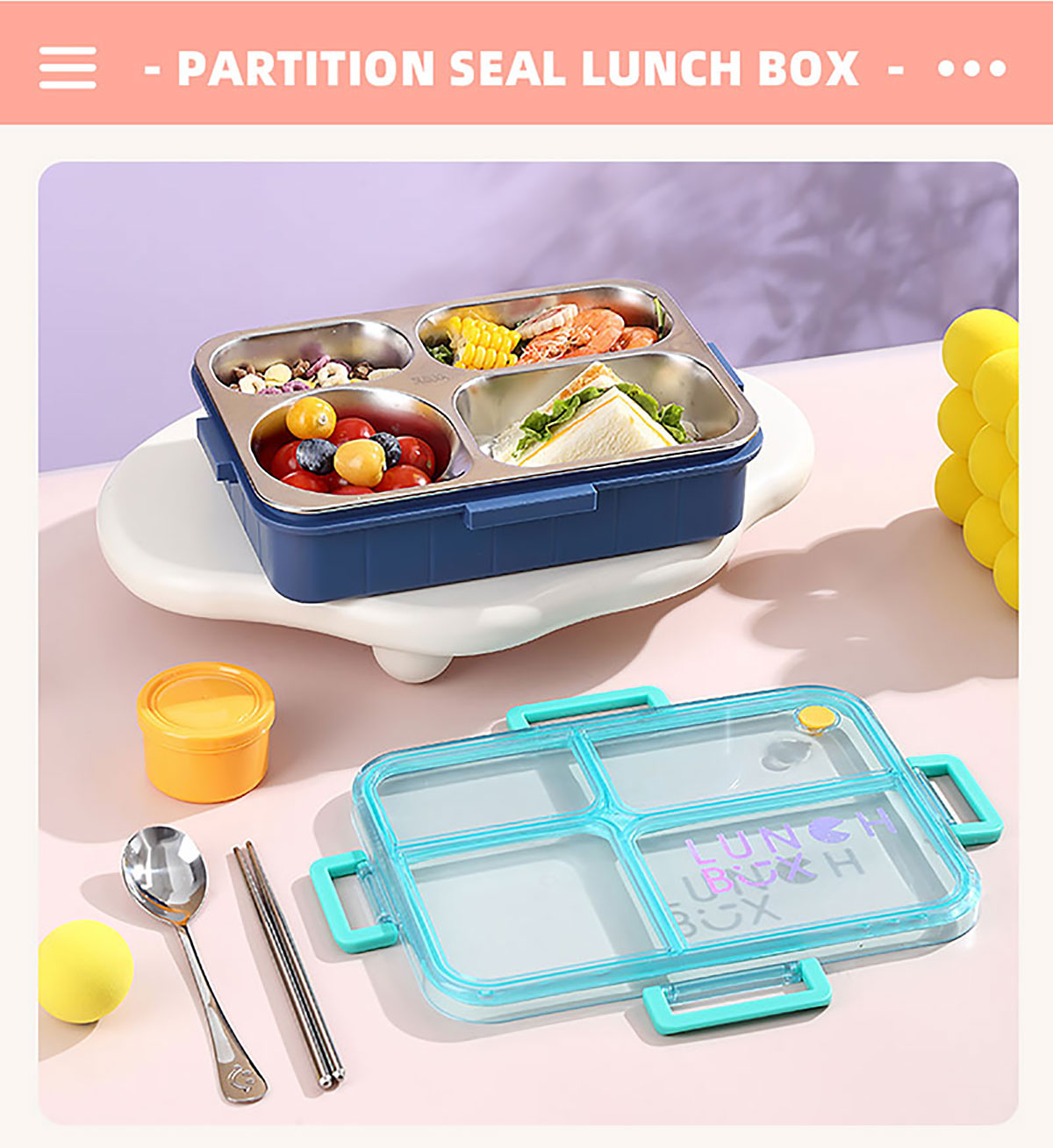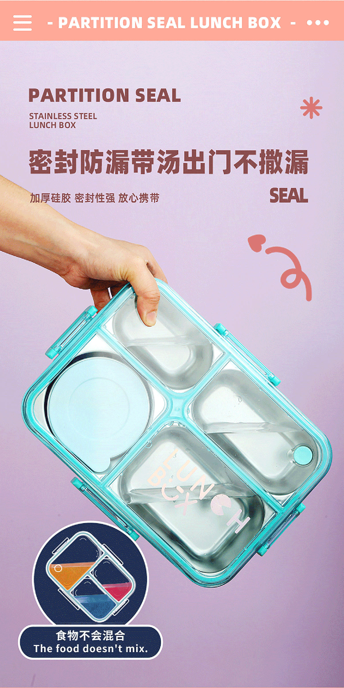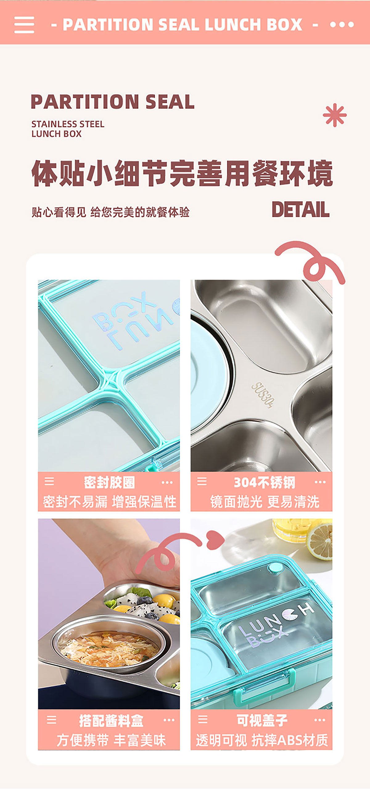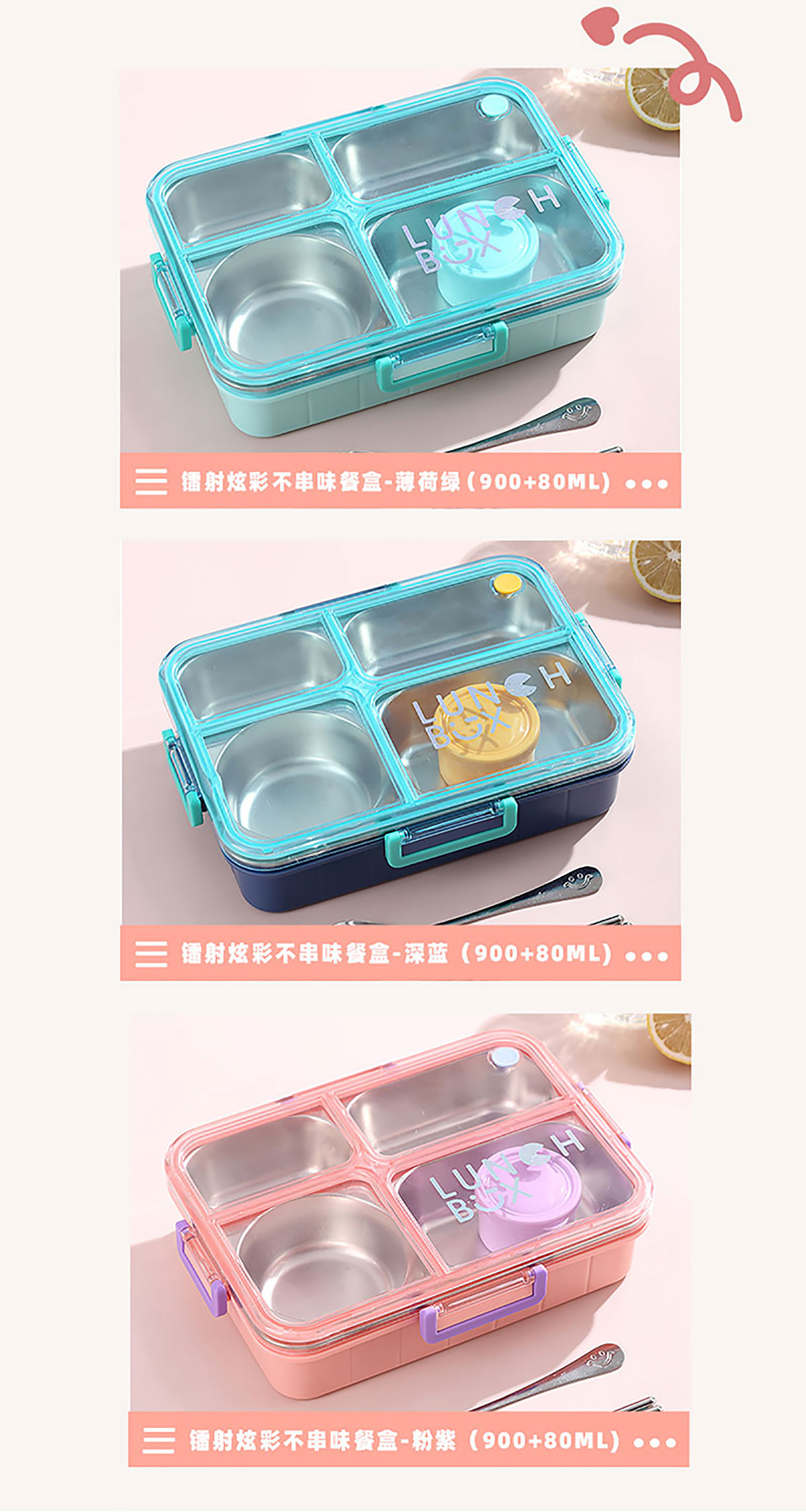 Size: AQX-2622:262*193*65mm/不銹鋼4格900ml+醬料杯80ml