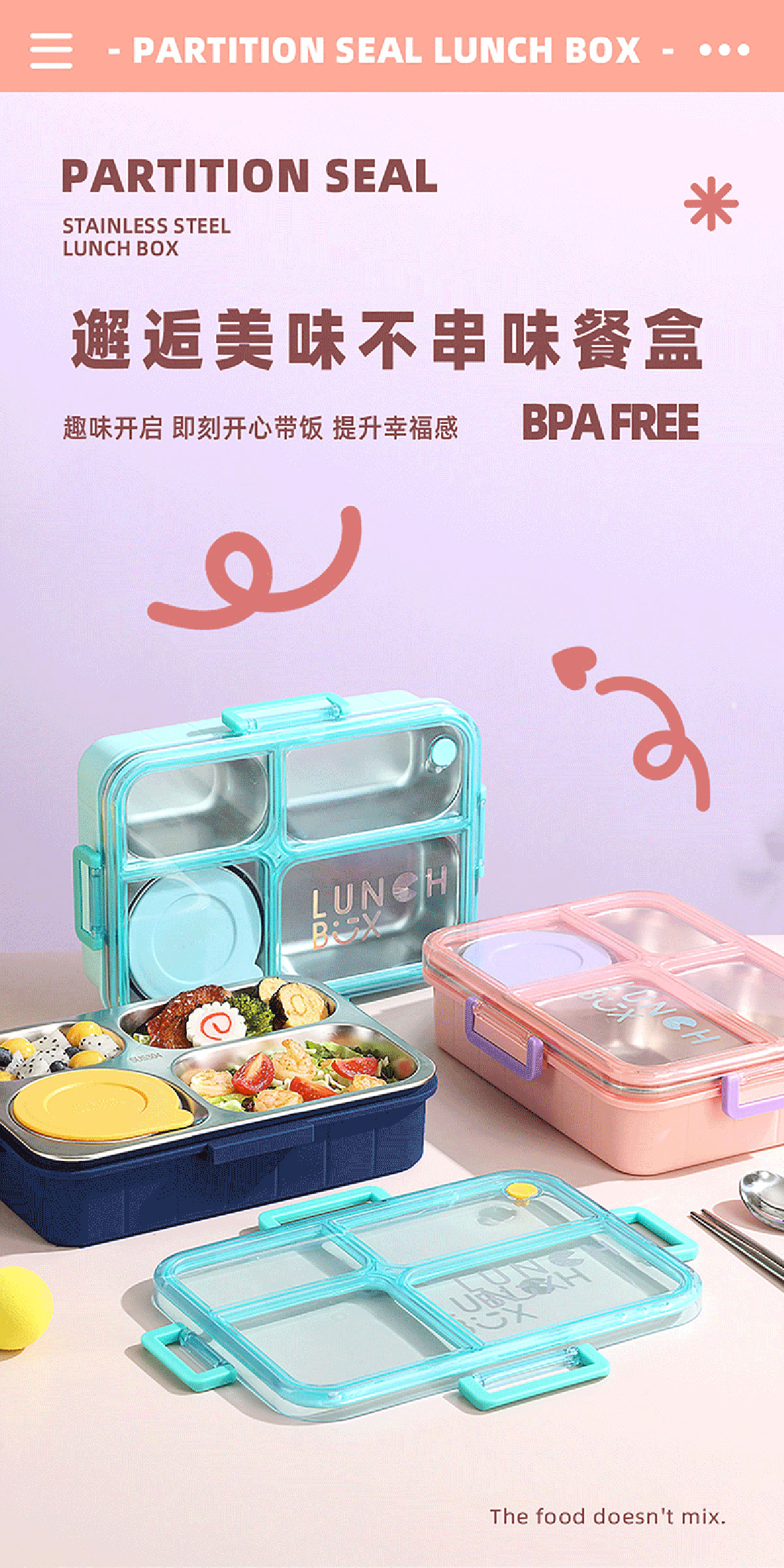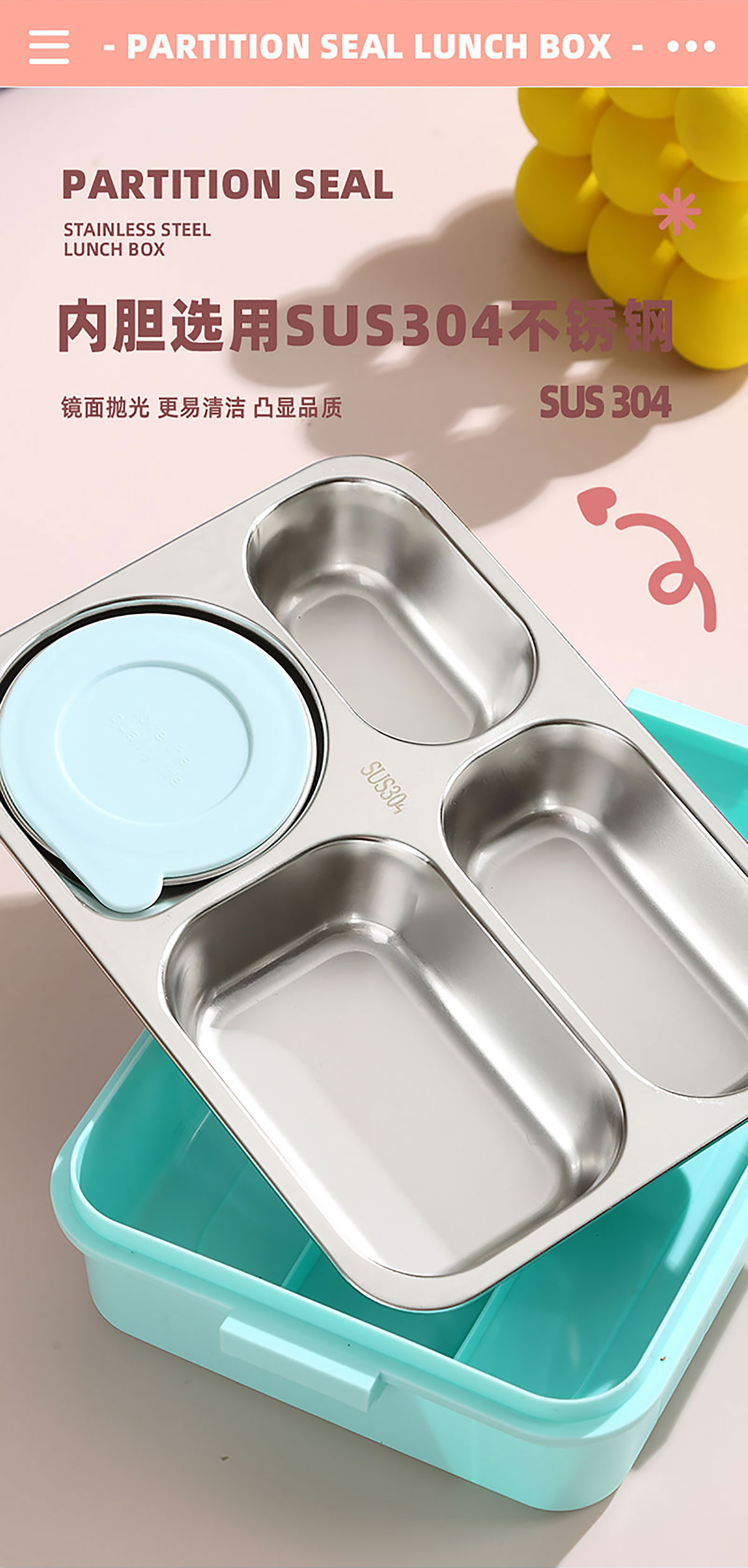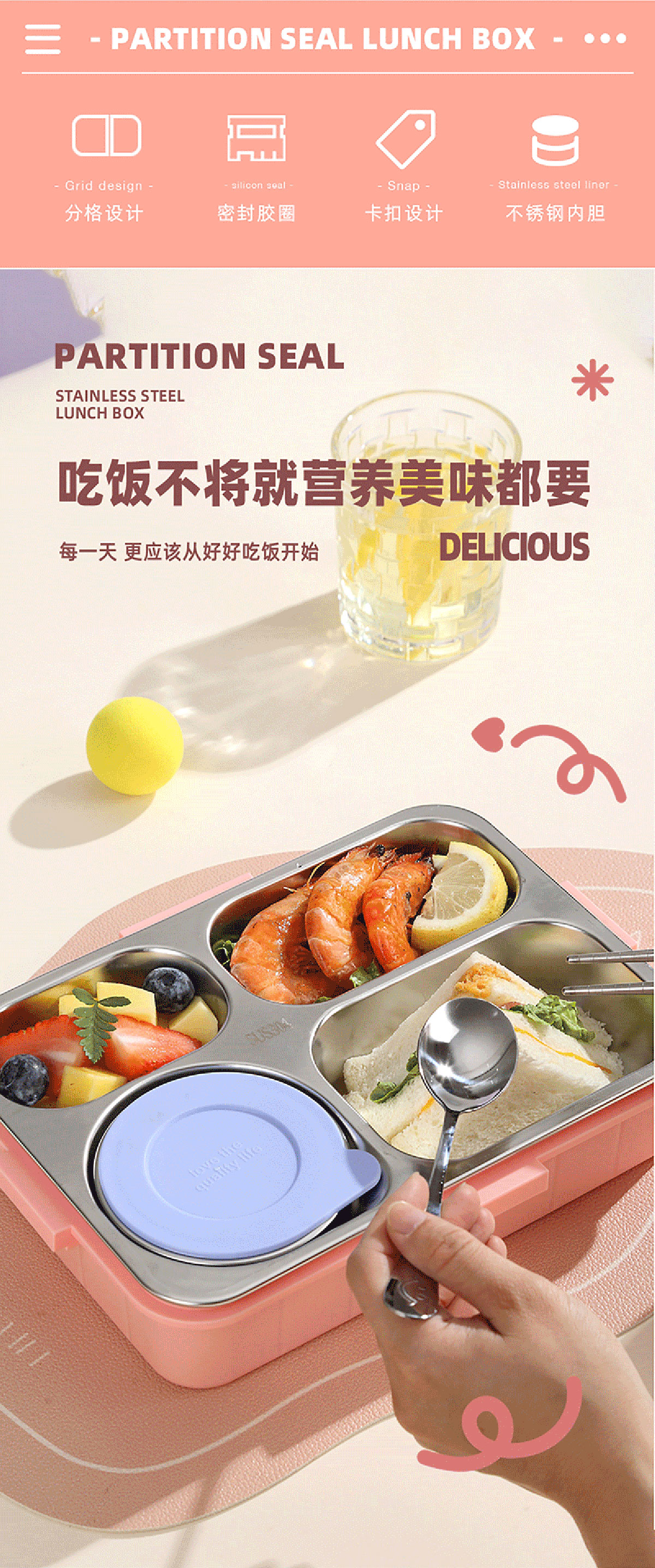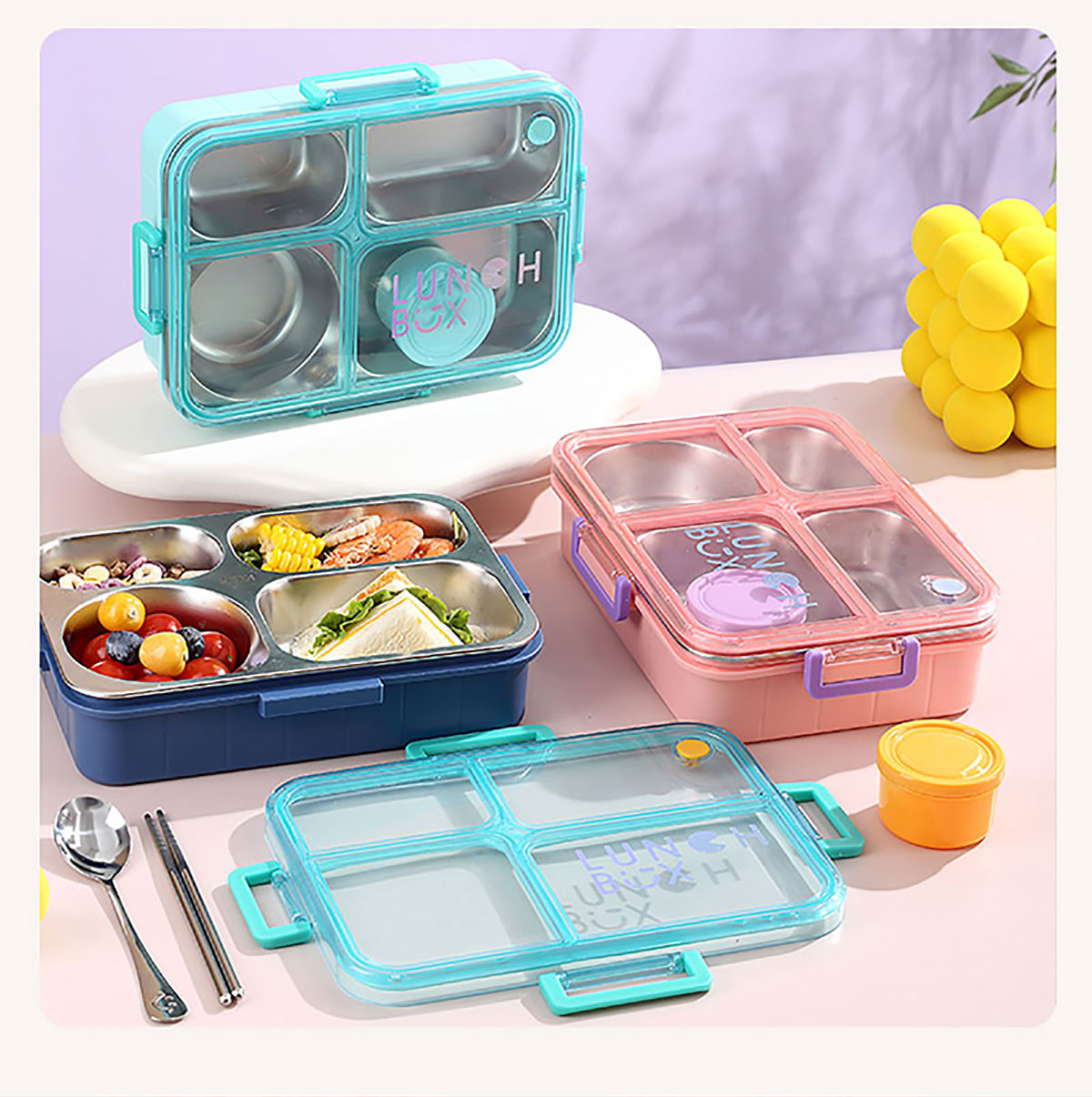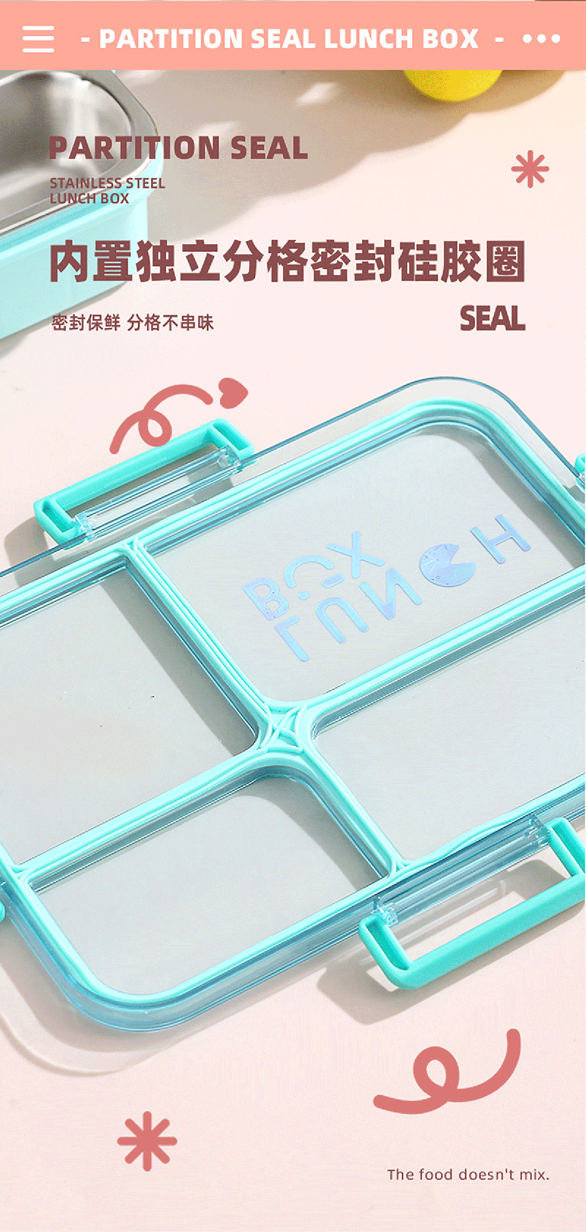 Size: AQX-2622:262*193*65mm/不銹鋼4格900ml+醬料杯80ml