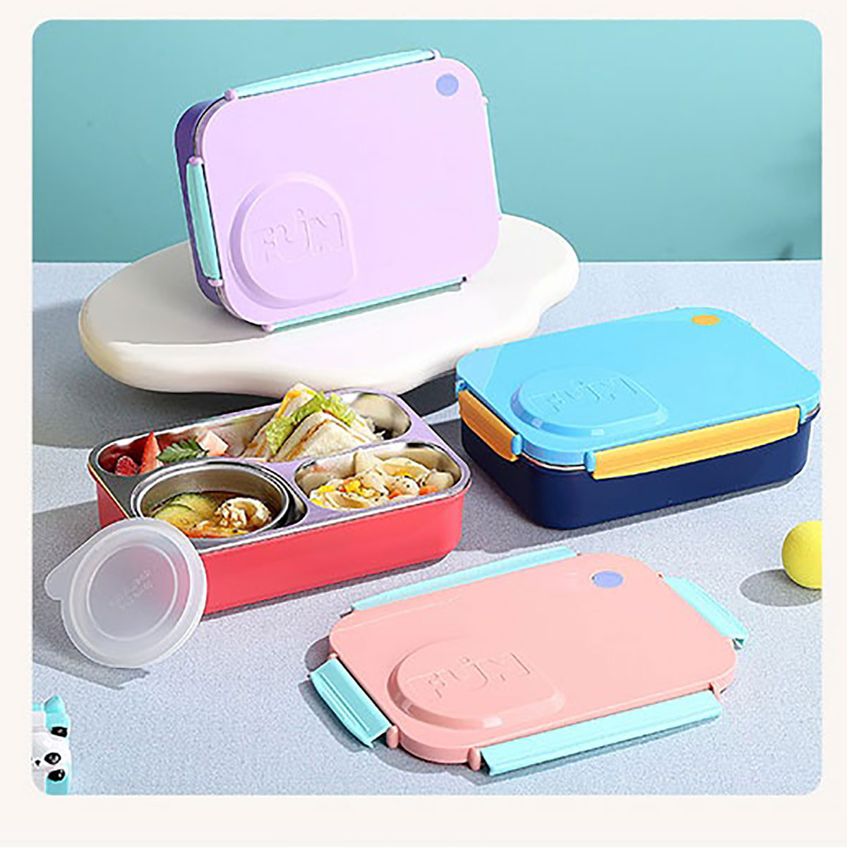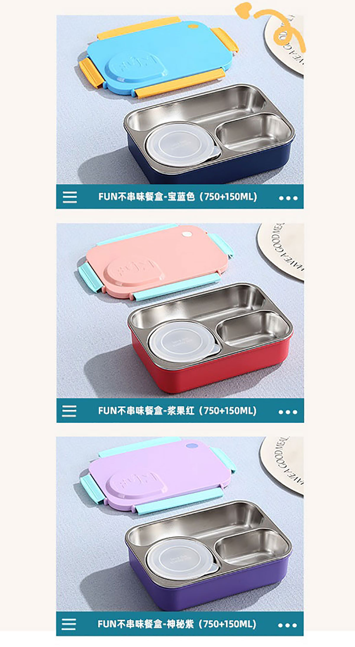 FUN不串味餐盒(不銹鋼3格750ml+塑料碗/不銹鋼碗150ml+不銹鋼勺筷)