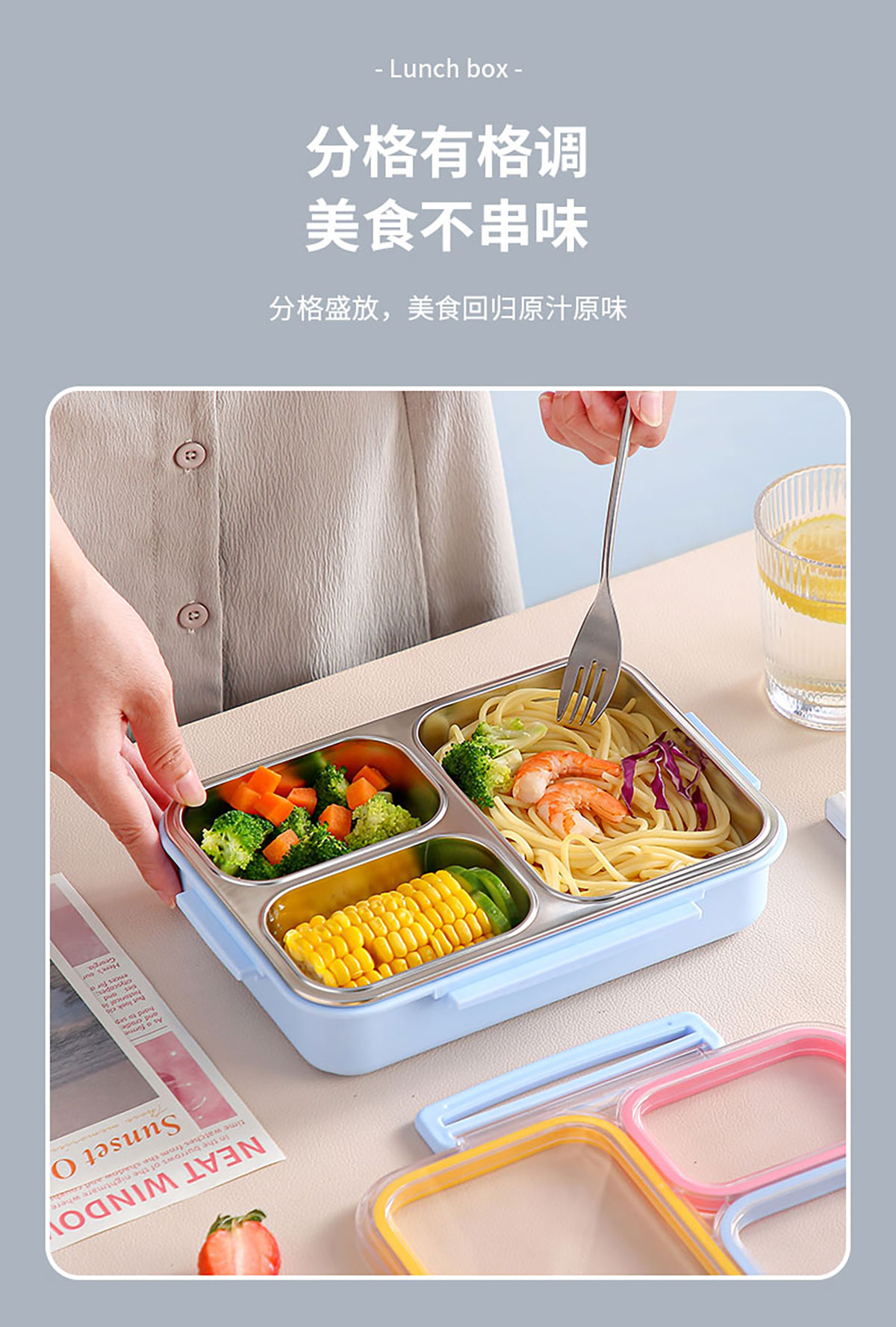 防串味三格不銹鋼飯盒820ml/PP款飯盒800ml