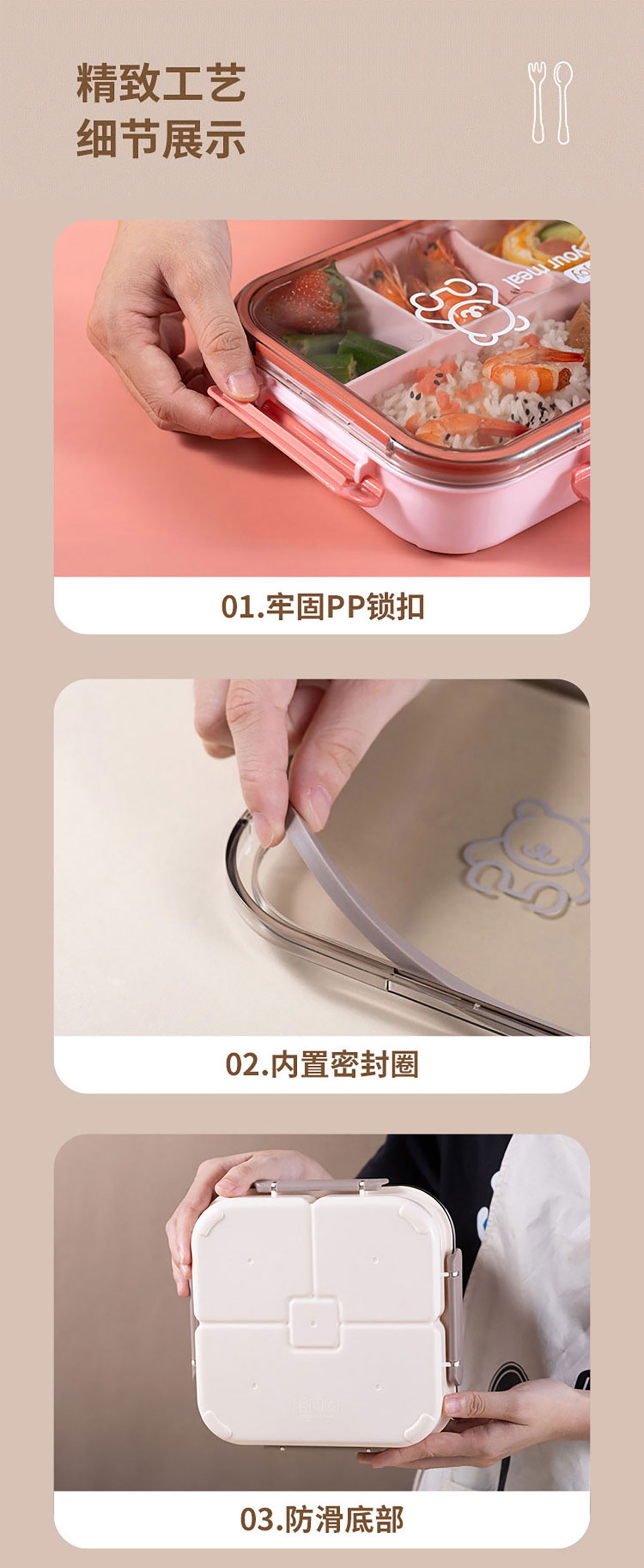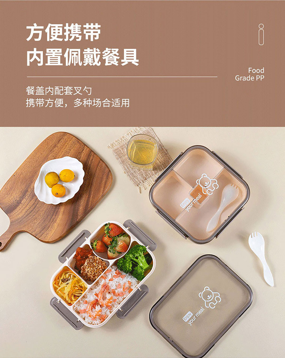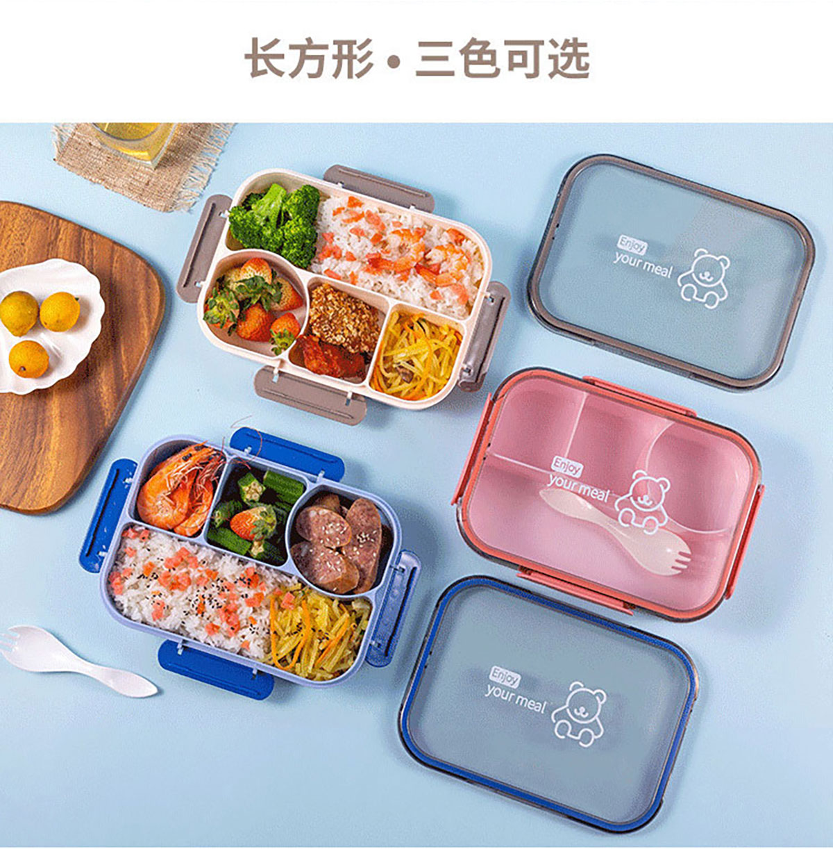 悅味長(zhǎng)方形/方形四格飯盒1050ml