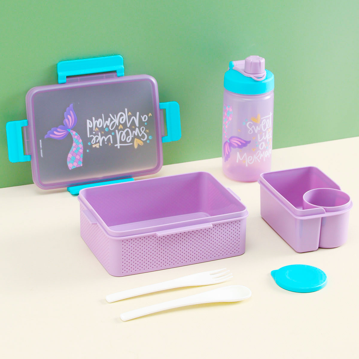 童彩3格飯盒+運動水壺套裝(含內(nèi)盒1500ml+500ml)
