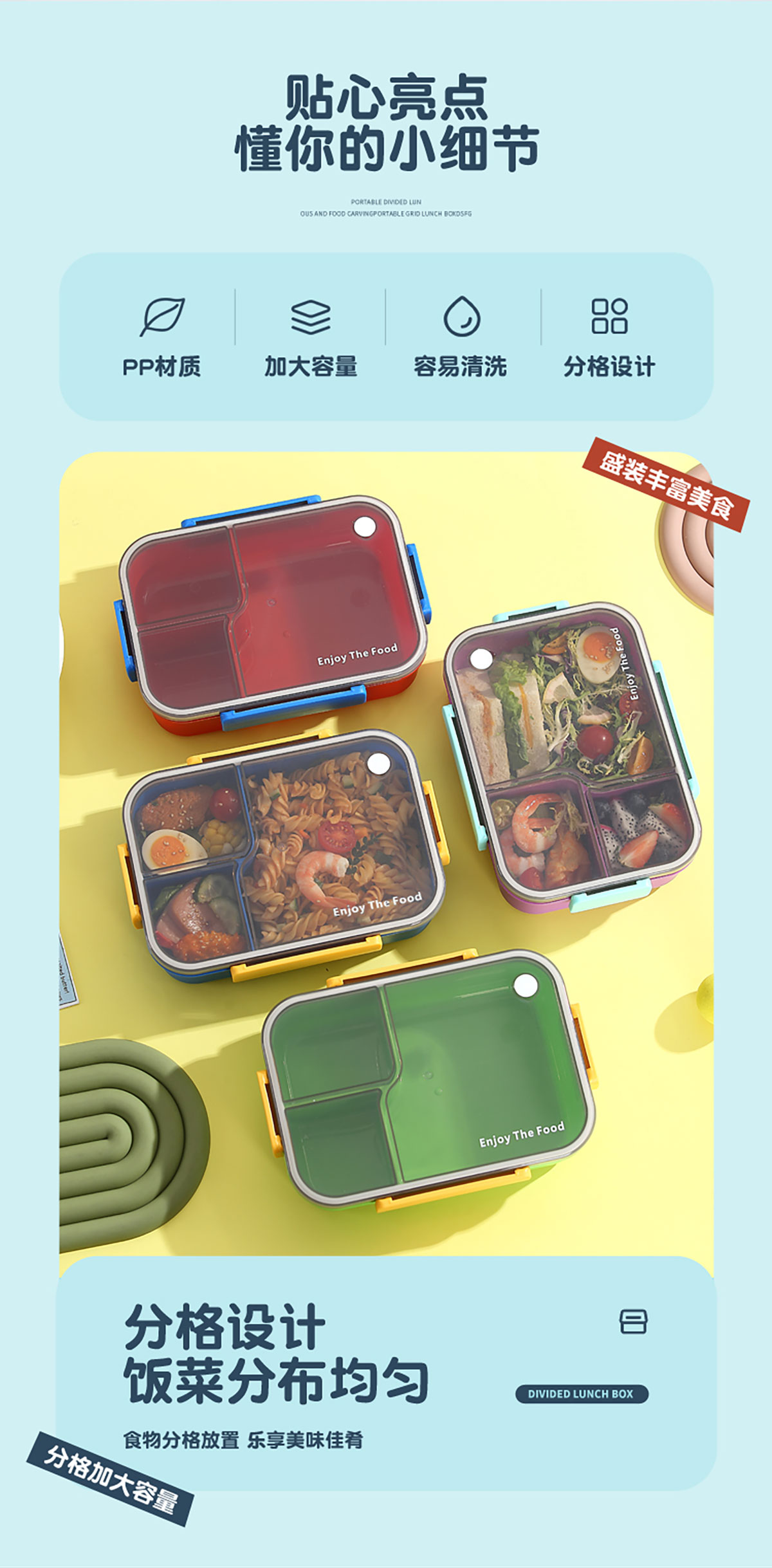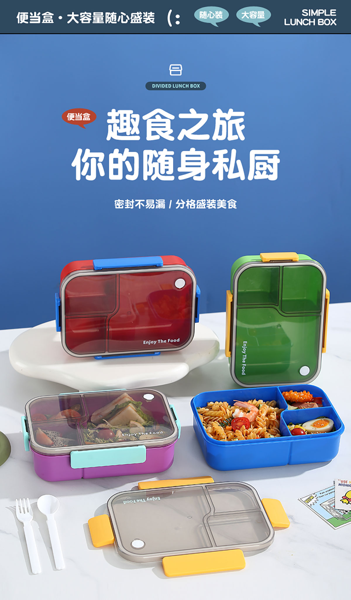 簡約透明分格飯盒1450ml