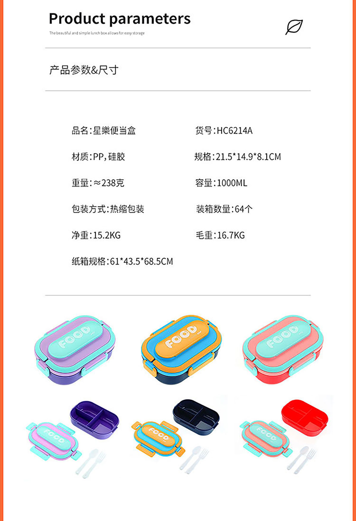 Size: SWY-HC6214A(三格PP款):215*149*81mm/1000ml
