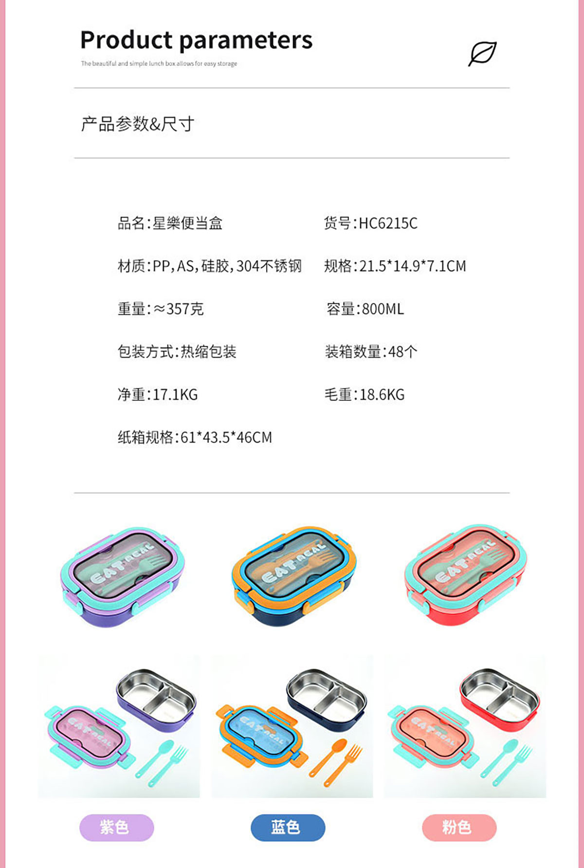 Size: SWY-HC6215A(三格PP款):215*149*71mm/1000ml