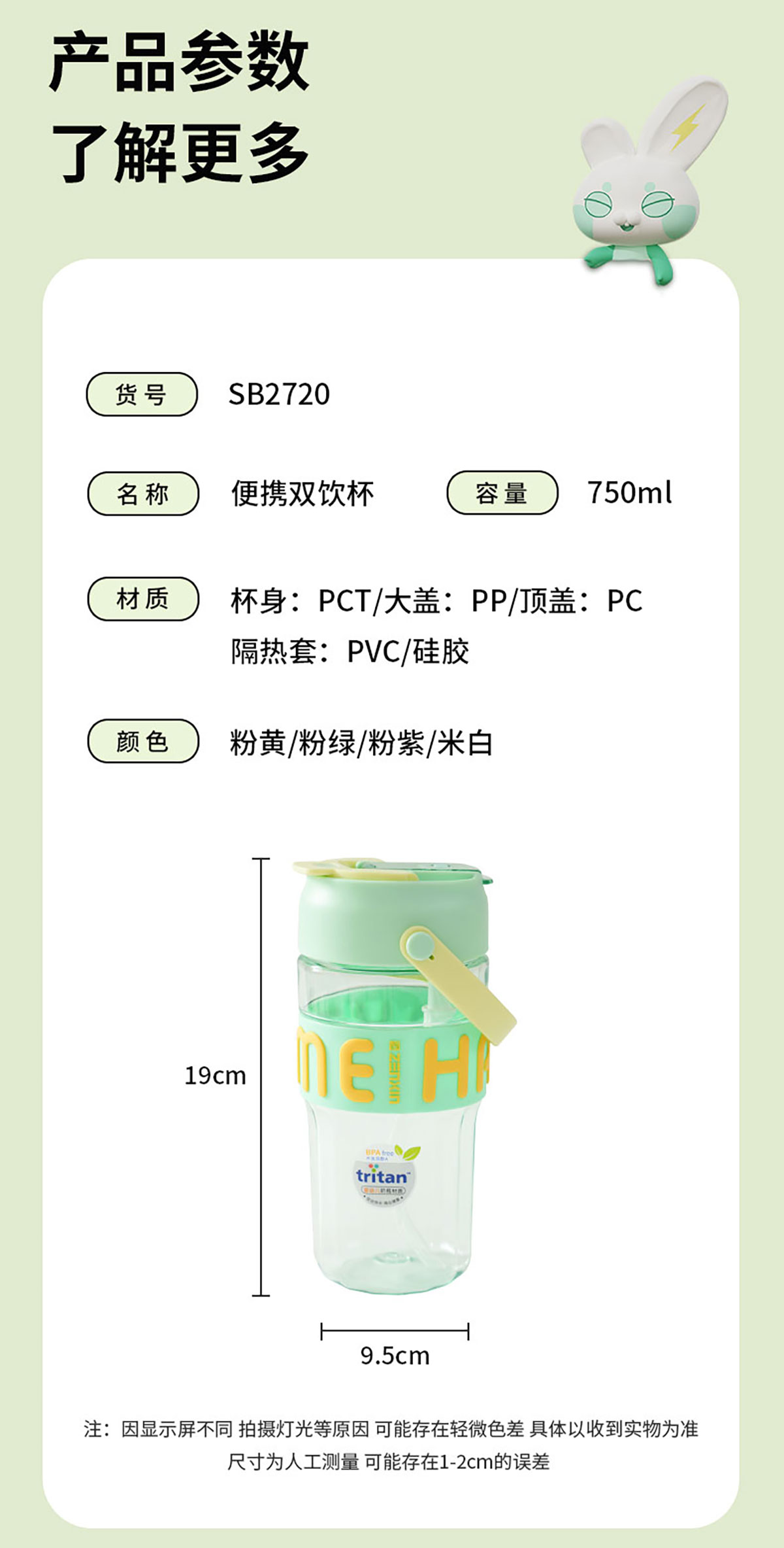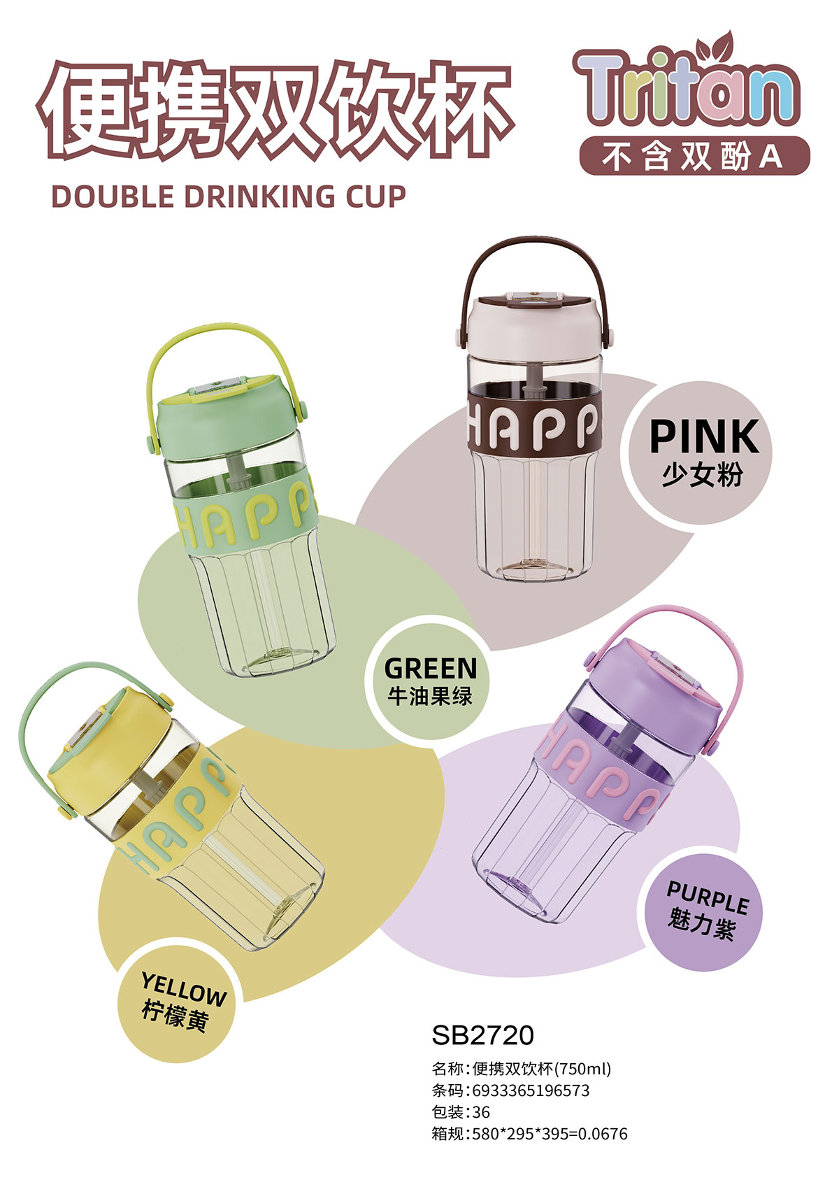 便攜雙飲杯(750ml) 彩盒裝/OPP裝